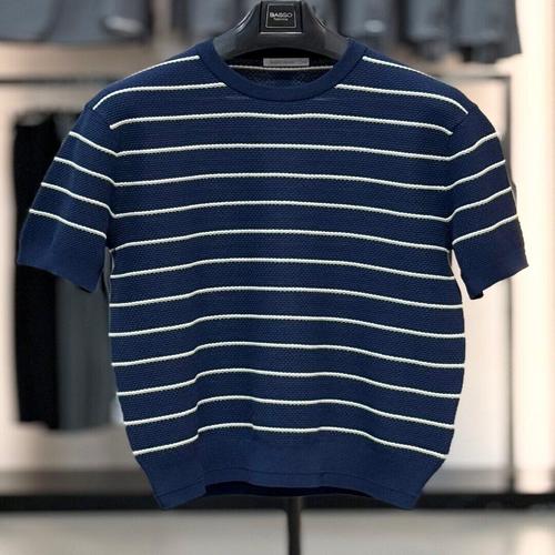 [바쏘옴므]다크네이비 면혼방 단가라 반팔 니트 WSZ2WT43A DN_SC