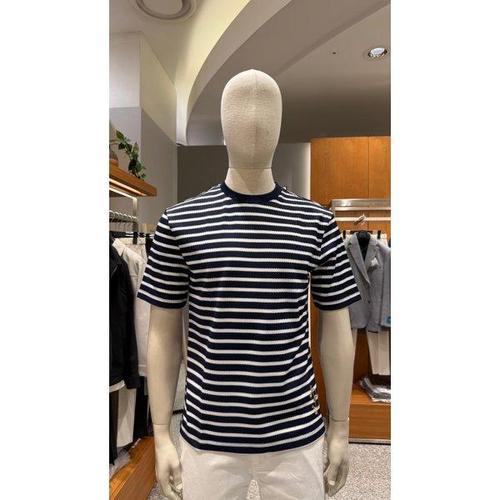 바쏘옴므 세이브존03 바쏘옴므 남자 봄 여름 네이비 면 단가라 라운드 티셔츠 WSAGZ1KR34A