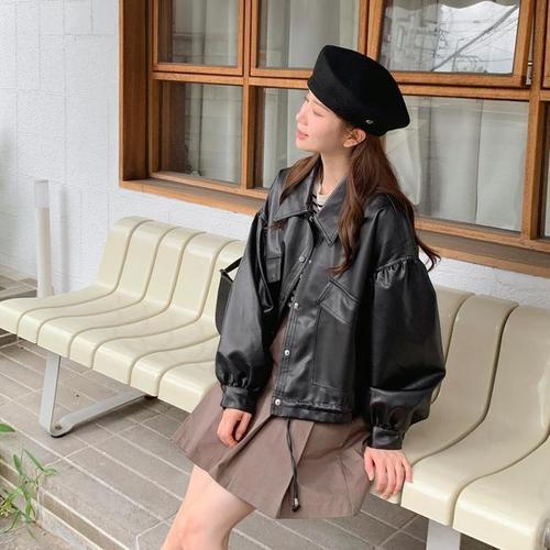 [옷자락]여자 가죽 버튼 외투 점퍼 바이크 레더 FW 자켓