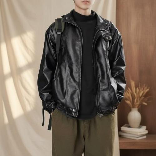 [다잇템]남자 레더 바이크 카라 자크 가죽 박시핏 자켓 (10582447A)