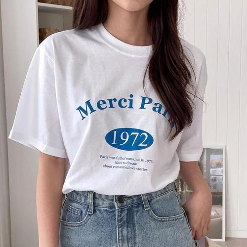 [다잇템]여자 실내복 바캉스룩 쭉티 SS 필기체 반팔티 (10430175A)
