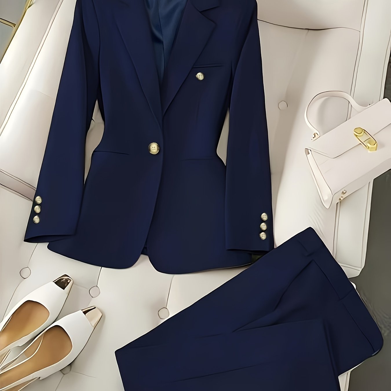 TEMU 여성용 캐주얼 웨스턴핏 단색 고급 양相当ボタン 수트 세트, 가을 직장인 출퇴근용 + 바지 2피스 세트