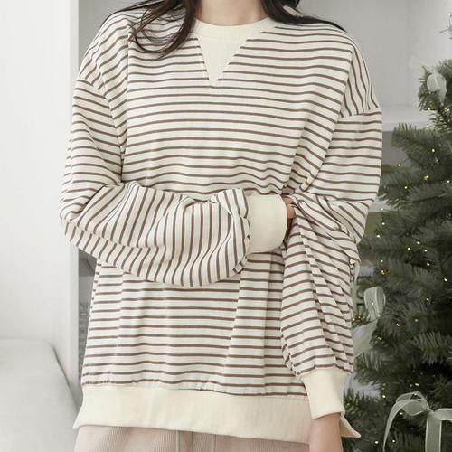 [다잇템]여자 기모긴팔티 박스핏 줄무늬 박시 맨투맨 (26705288A)