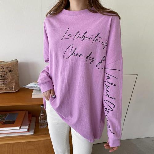 [다잇템]여성 박스핏 롱슬리브 필기체 U넥 롱 티셔츠 (27317505A)