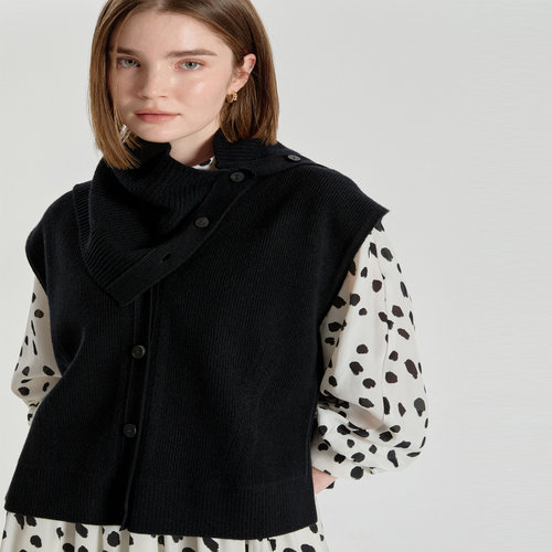 닥스 여성 블랙 머플러옵션 울캐시미어 혼방 아우터형 베스트 (DLSW6B211BK)