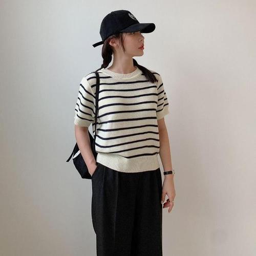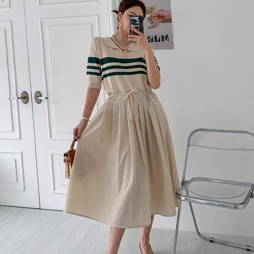 스트라이프 반팔 니트 롱원피스 여름 데이트룩