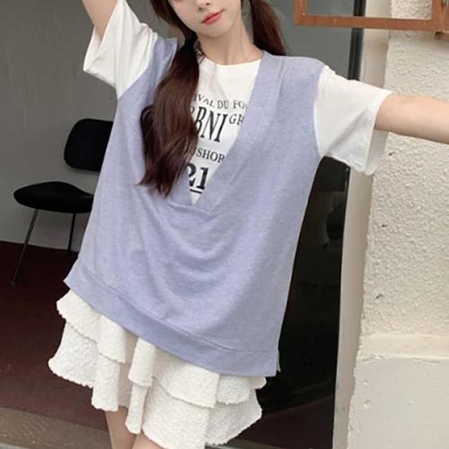 [주식회사 브이와이][JHQRU27N_4A]조끼st 박스티 반팔 깊은브이넥 데일리 (22618058A)