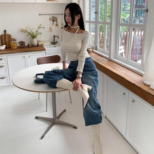 [다잇템]여자 워싱 넓은 하렘 펌킨 세미배기 진 팬츠 (11039233A)