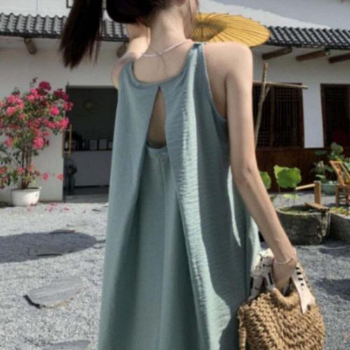 백트임 롱 원피스 홀터넥 나시 원피스 비치 드레스