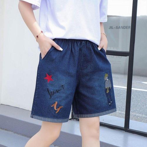 [오너클랜]인기상품 여성용 밴딩 데님 5부 반바지 자수 포인트 청반바지 [WFLLKP1_260305]