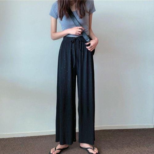 [미라클세븐]여성용 여름 쿨 폴리 밴딩 와이드 팬츠