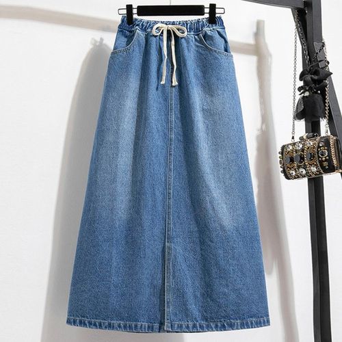 네모엔룩 여성용 데님A라인 빅사이즈 뒷밴딩 롱 청 스커트