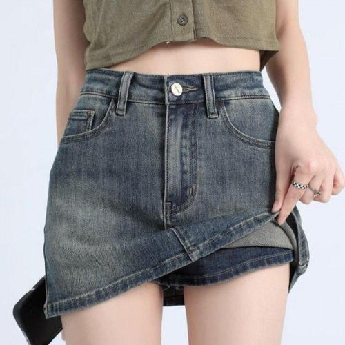 MIREA 여성 A라인 미니스커트 데님 캐주얼 여름 팬츠형