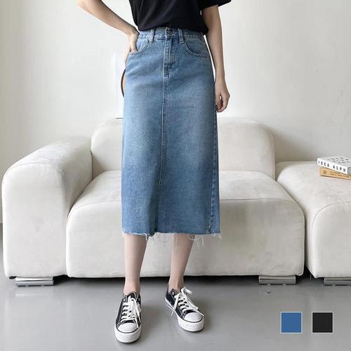 딥데님 심플 절개 밴딩 스커트 (2color)