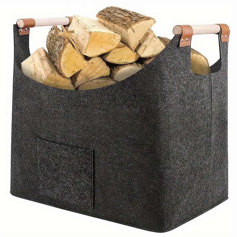 TEMU 1개 대용량 펠트 보관 바구니, 벽난로 나무 손잡이 신문 잡지 정리함, 휴대용 장작 보관 가방 더러운 옷 걸레통 할로윈 & 크리스마스용
