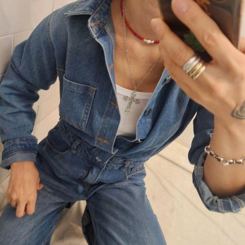 캐주얼 데님 청 오버롤 점프수트 꾸안꾸 진청 여자 멜빵바지