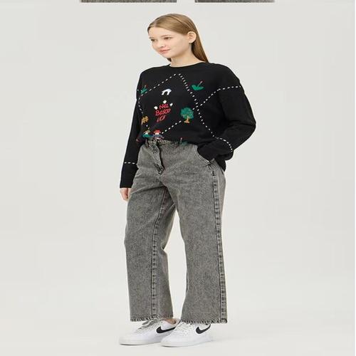 베네통/애플아울렛/컬러 자수 배기핏 데님 팬츠 BADPA6511