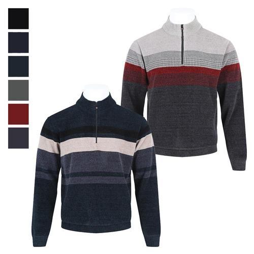 남자 소프트 고급 밍크기모 배색 반집업 니트 BR-KN-Q006-베이지