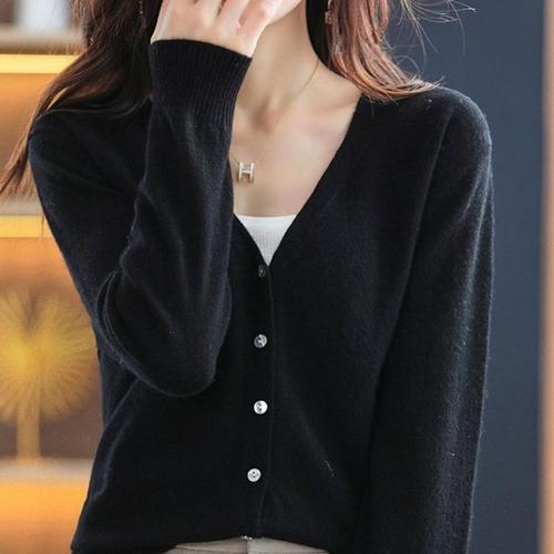 [셀러허브_여성트랜드패션]브이넥 여성가디건 버튼 베이직 심플 가디건