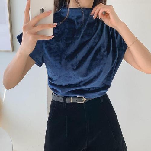 에이치스 포근 보들보들 벨벳 벨로아 세미박시핏 유넥 겨울 무지 반팔티