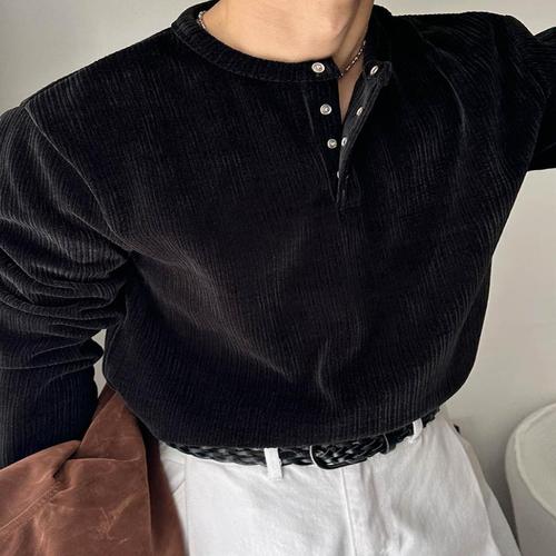 [쿼터]남자 루즈핏 벨로아 헨리넥 벨벳 골지 니트 긴팔티 4color