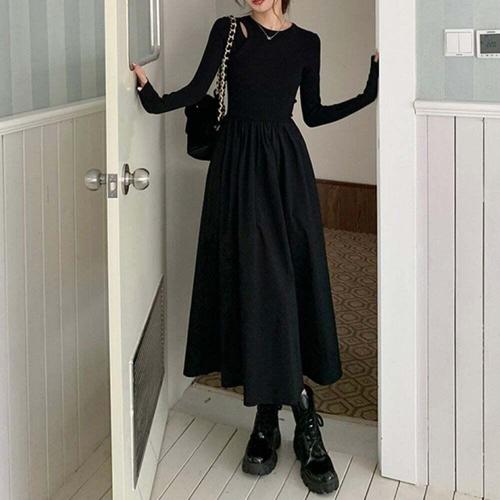 오피스룩 벨벳롱원피스 시스루벨벳롱원피스(블랙)