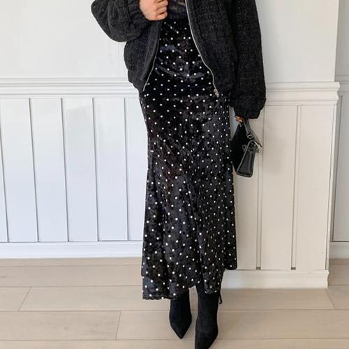 유니픽 여성 가을겨울 블랙 머메이드 롱스커트 고급 벨벳 우아한 디자인cc