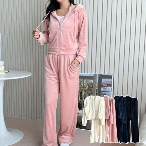 [셀럽하우스]데일리 BSTY2921 여자 벨벳 후드집업 와이드 트레이닝 세트