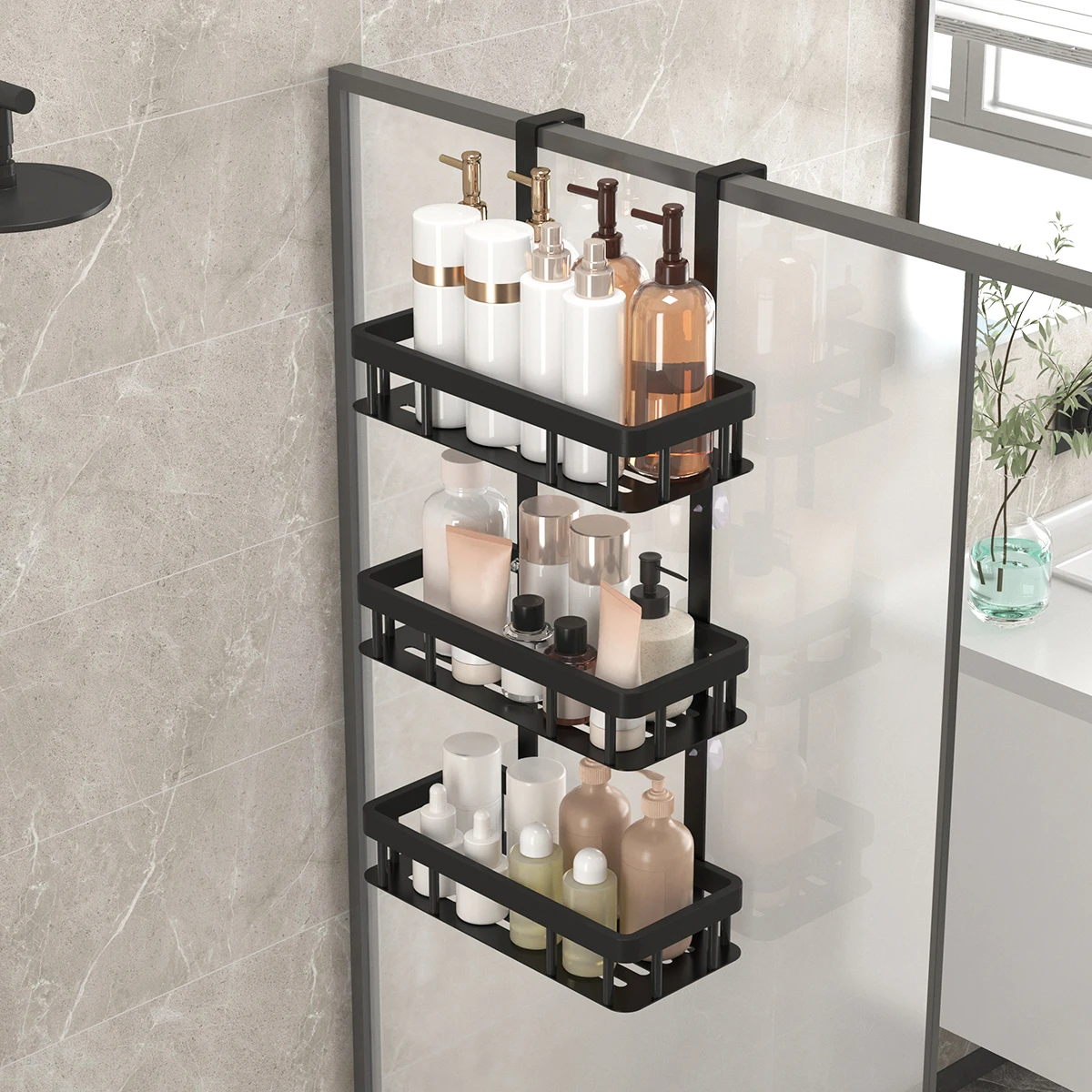 2/3단 블랙 녹 방지 샤워 수납 선반, 문에 설치, 드릴 필요 없음, 대용량 욕실 정리함, 간편 설치