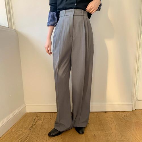 [미라클세븐]여성 봄 데일리 오피스 스타일 투핀턱 와이드 슬랙스 정장 바지 롱 코디