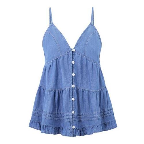 [지지피엑스]셔링 버튼업 데님 뷔스티에 블라우스 (GQBBA002D)