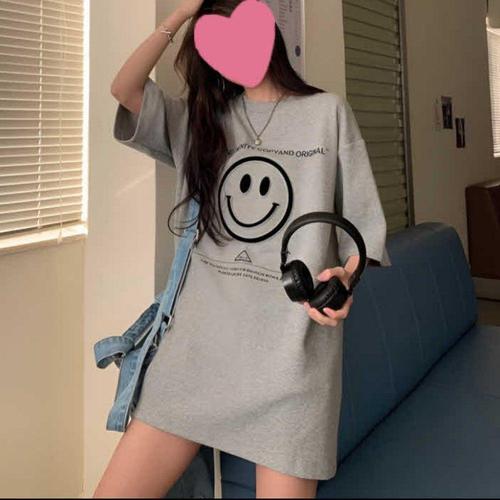 [오너클랜]인기상품 여성용 루즈핏 반팔 티셔츠 여름용 스마일 프린트 오버핏 [WFLLIK9_260305]
