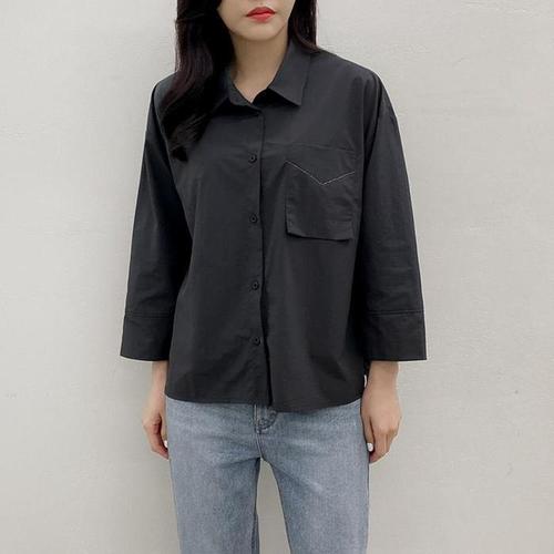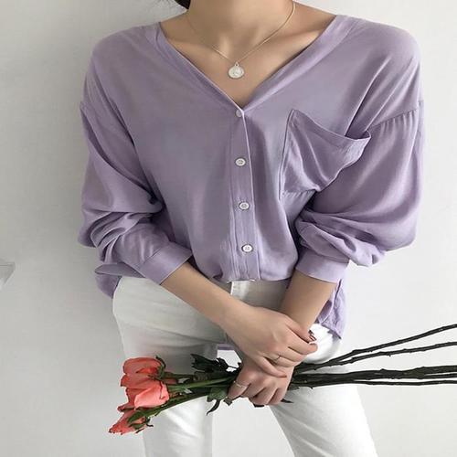 [다잇템]여자 V넥 FW 셔츠 롱슬리브 주머니 블라우스 (10693950A)