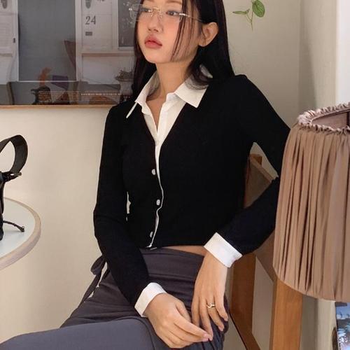 [신상오픈런]크롭셔츠 키치 레이어드 골지 브이넥니트 숏가디건 (30462815)