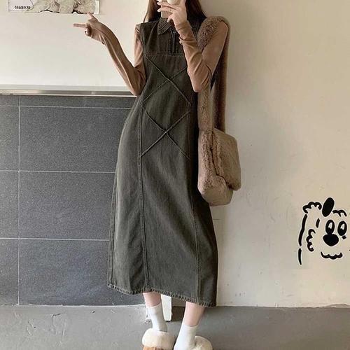 [주식회사 브이와이][JHQRJFBW_4B]데님 가을원피스 카라 티셔츠 빈티지룩 (24037042A)