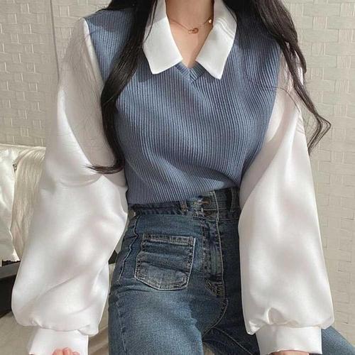 [주식회사 브이와이][JHQRJFTB_4B]여성스런 카라 레이어드 페이크티셔츠 (24021157A)