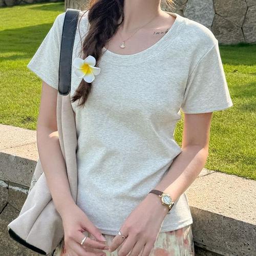 엘리몬드 여성 데일리 베이직 반팔 브이넥 라운드 티셔츠 2color / 여름반팔 데일리티셔츠 면티