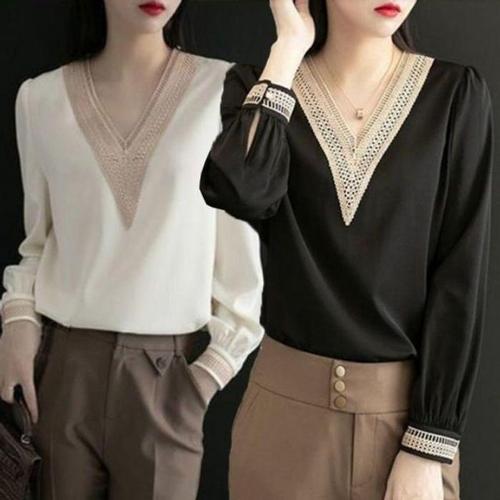 [주식회사 브이와이][JHQRLU4J_4B]예쁜 레이스블라우스 가을 봄 여성 브이넥 (23869218A)