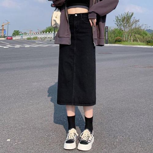 [오너클랜]인기상품 치마 여성 진스커트 롱치마 롱스커트 데님 블랙 뒷트임 [WFJHMUA_251110]