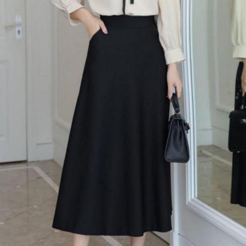 스커트 블랙 여자 플레어 롱 A라인 밴딩 단정한 허리