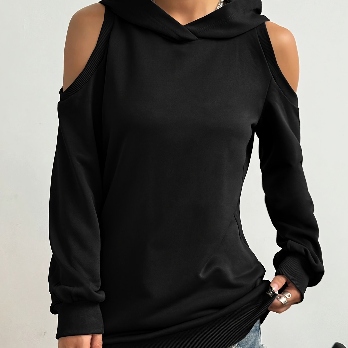 TEMU 세련된 단색 후드 오프숄더 캐주얼 여성용 스웨트셔츠