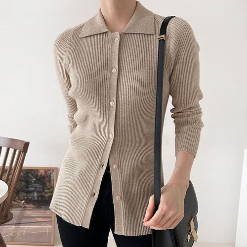 [다잇템]여자 카라넥 양트임 골지니트 비스코스 가디건 (23706645A)
