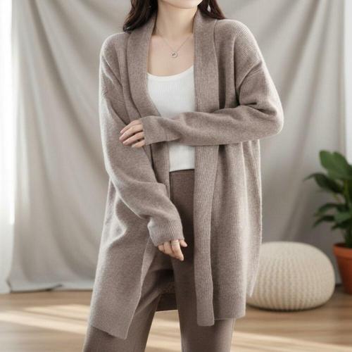 부드러운 비스코스 브이넥 기본 여성 롱 가디건 간절기