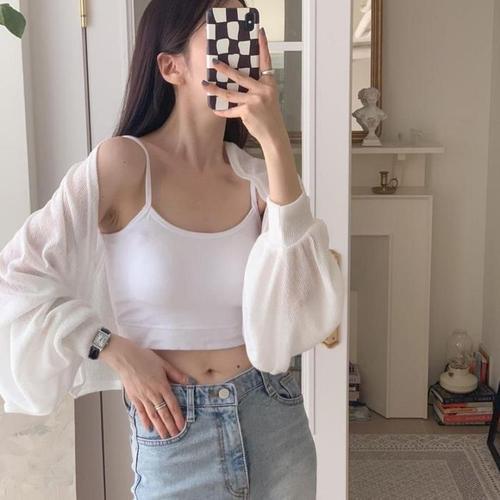 ONM 가벼운 여름 비치 가디건 퍼프 소프트 니트 숏