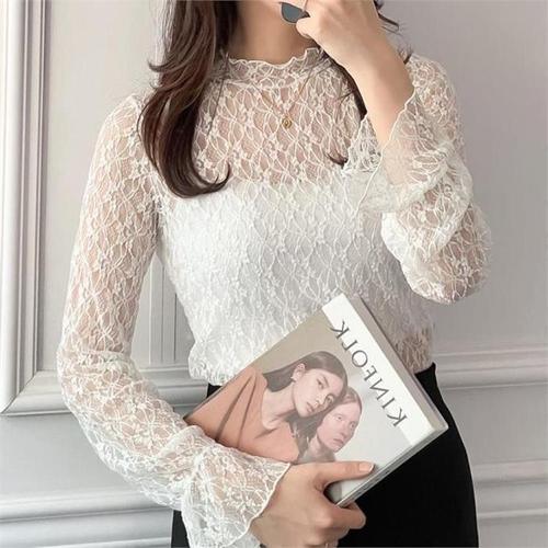 [다잇템]여자 FW 프릴 하이넥 비침 레이스 긴팔티셔츠 (8990522A)