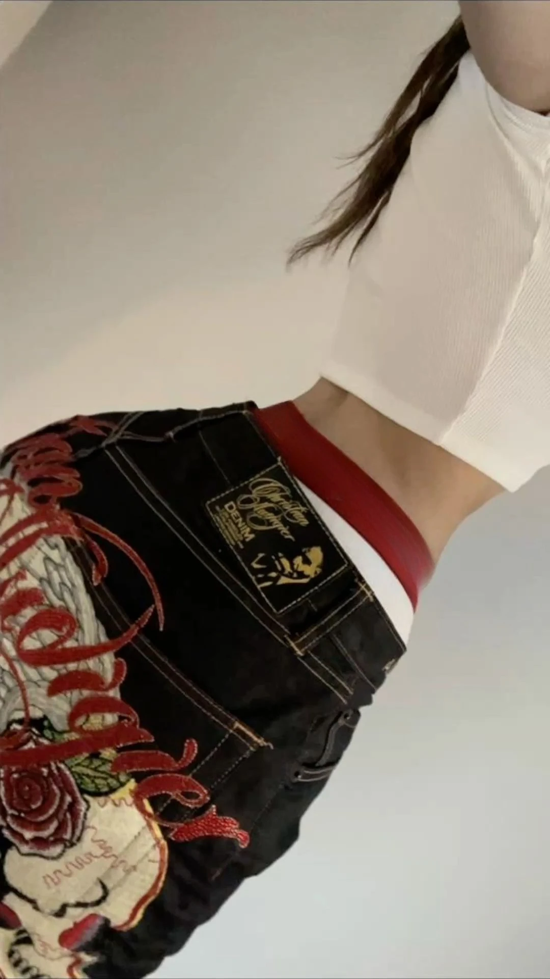 여성용 하이웨이스트 스트레이트 레그 진 자수 루즈핏 레이지 스타일 봄 여름 신상 브라운 와이드 레그 롱 팬츠