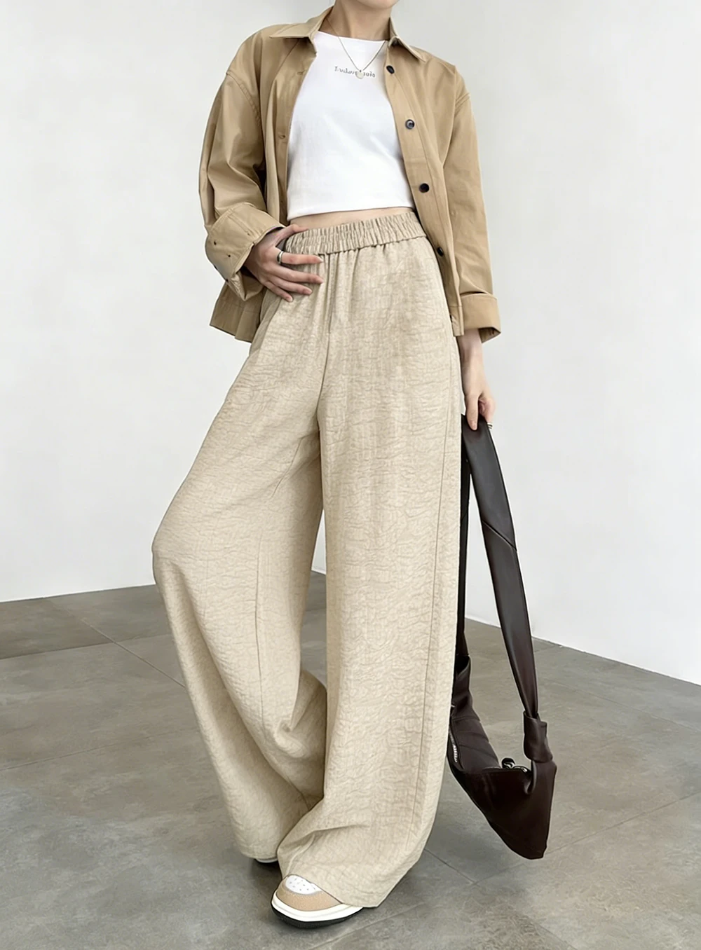 TEMU 봄/여름 패션 신상품: 여성용 우아하고 기품 있는 하이웨이스트 루즈핏 레그 와이드 레그 팬츠