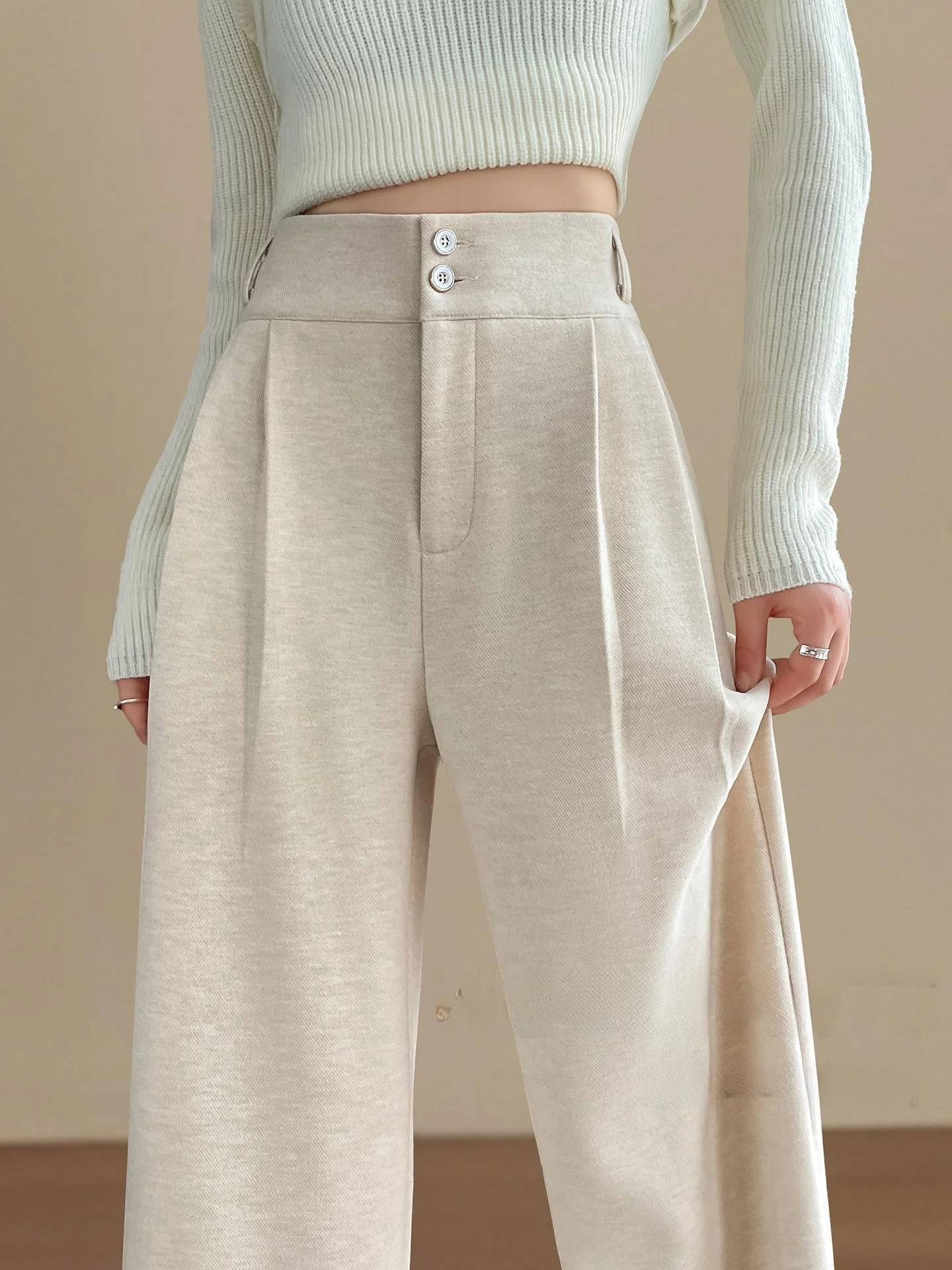 하이웨이스트 스트레이트 레그 울 트라우저 여성용 봄 가을 겨울 아세테이트 오프 화이트 수트 팬츠 네로우 캐주얼 와이드 레그 트라우저