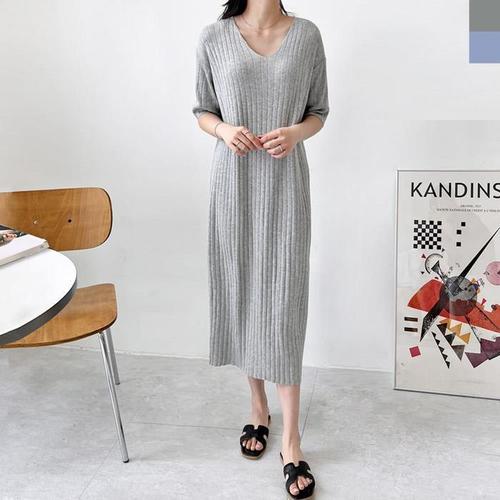 [옷자락] 여자 브이넥 빅사이즈 골지 슬릿 봄 등원룩 롱원피스