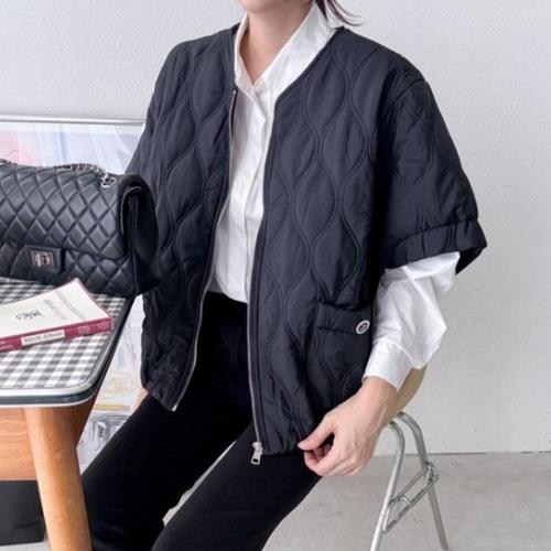 [셀러허브_여성트랜드패션]여성 U넥 집업 빅사이즈 폴리에스터 퀼팅 조끼